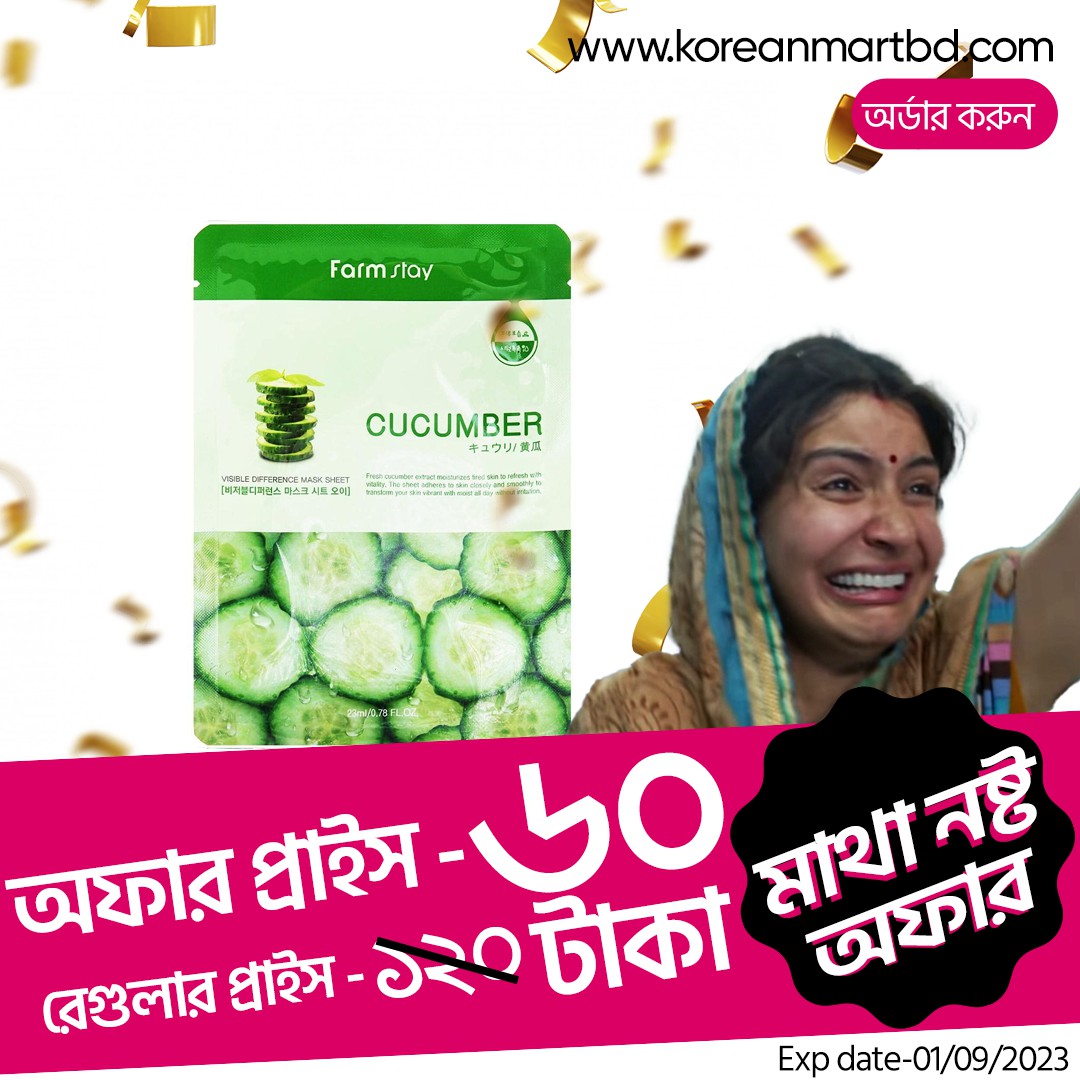 Farm Stay Visible Difference Mask Sheet (Cucumber) is a sheet mask made with cucumber extract that is known for its hydrating and soothing properties. The sheet mask is designed to provide deep hydration to the skin and improve its texture.The mask is made from soft and thin cotton that adheres closely to the skin, allowing the essence to be fully absorbed. It comes in a convenient single-use package that makes it easy to use at home or while traveling.Overall, Farm Stay Visible Difference Mask Sheet (Cucumber) is designed to provide a relaxing and refreshing skincare experience while leaving the skin looking and feeling hydrated and revitalized.
