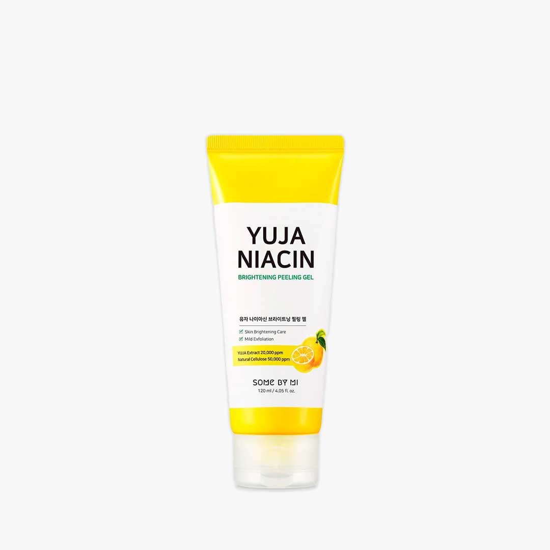 Some By Mi Yuja Niacin Brightening Peeling Gel is a skincare product that is designed to exfoliate and brighten the skin. This peeling gel contains a blend of natural ingredients that work together to remove dead skin cells, dirt, and impurities from the skin, revealing a brighter, smoother complexion.The key active ingredients in this peeling gel include yuja extract, niacinamide, and papaya extract. Yuja extract is a rich source of vitamin C, which helps to brighten the skin and improve its texture. Niacinamide is a form of vitamin B3 that helps to reduce hyperpigmentation and improve the overall appearance of the skin. Papaya extract is a natural exfoliant that helps to gently remove dead skin cells and unclog pores.This peeling gel has a lightweight, gel-like texture that is easy to apply and massage onto the skin. As it is rubbed in, the gel begins to form small balls or clumps, which help to lift away dead skin cells and impurities. The formula also contains natural cellulose, which provides additional exfoliation without damaging the skin.